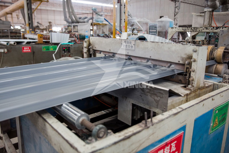 擠出成型后的片材需要經(jīng)過(guò)一系列的后續(xù)加工才能成為我們常見的樹脂瓦。首先是對(duì)擠出成型后的片材進(jìn)行切割,使其長(zhǎng)度符合實(shí)際需求。然后,對(duì)切割好的片材進(jìn)行壓型,即將其放置在模具上,通過(guò)加熱和壓力使其形成波浪形的表面。這一步的目的是使樹脂瓦表面呈現(xiàn)出自然的瓦楞紋理,提高其美觀度和抗壓性能。壓型好的片材進(jìn)入恒溫恒濕的設(shè)備中進(jìn)行固化,使其內(nèi)部的PVC分子鏈逐漸交聯(lián),從而提高其硬度和強(qiáng)度。